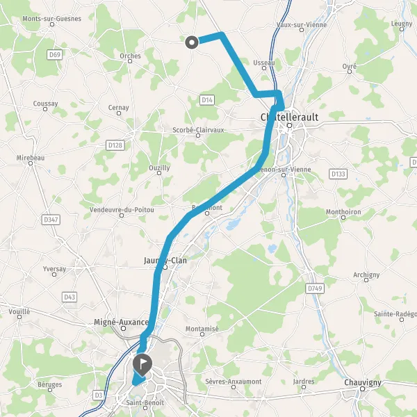 Au rond-point, prendre la 3ème sortie sur D22 (Place du 28 Août 1944) et continuer sur 3,4 kilomètres