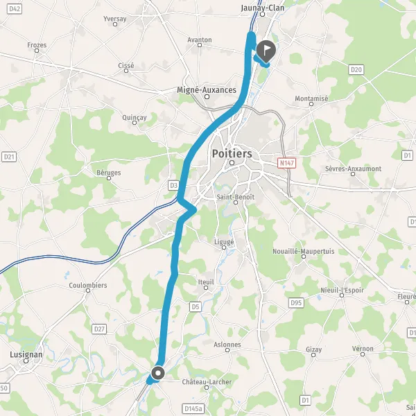 Au rond-point, prendre la 2ème sortie sur D20d (Avenue René Monory) et continuer sur 450 mètres
