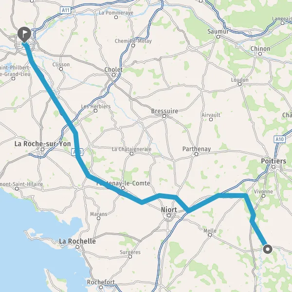 Prendre à droite et rejoindre A83. Continuer sur 150 kilomètres