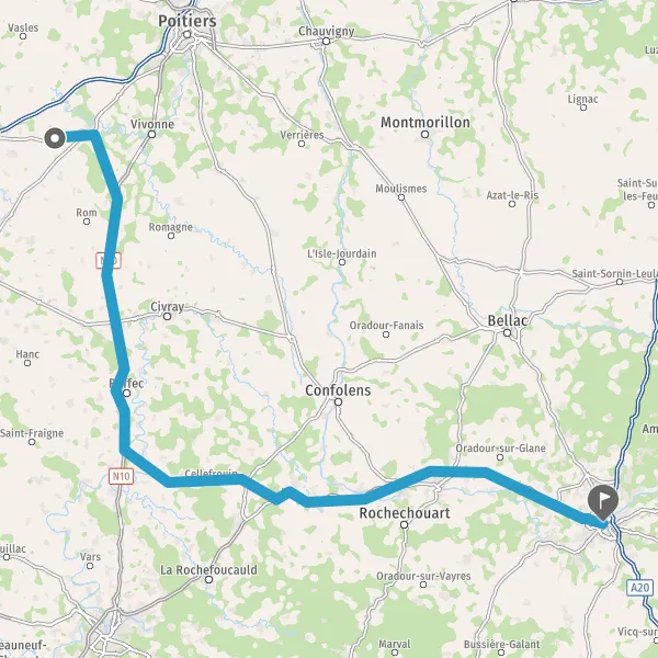 Prendre à droite et rejoindre N141 E603 (N141). Continuer sur 57 kilomètres