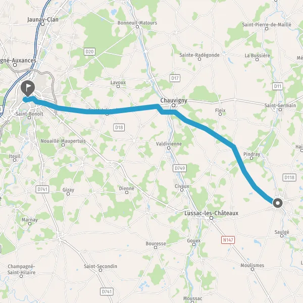 Au rond-point, prendre la 2ème sortie sur D54 (Avenue de Chauvigny) et continuer sur 11 kilomètres