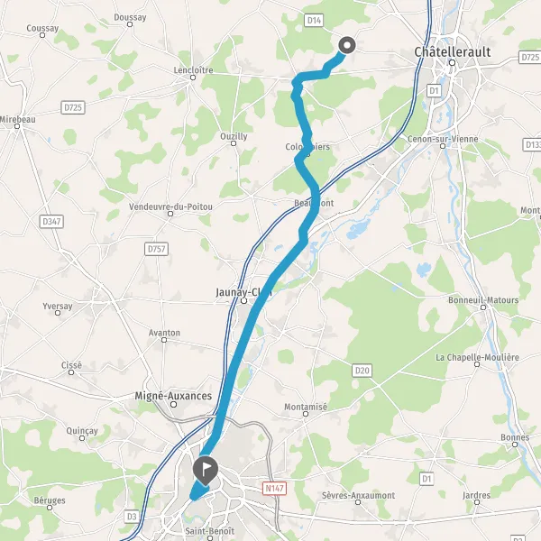 Tourner à droite sur D725 (Route de Châtellerault) et continuer sur 1,7 kilomètre