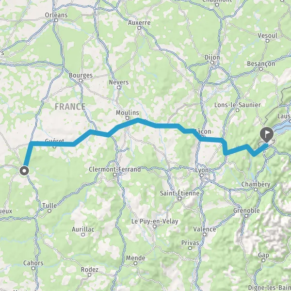 Prendre à droite et rejoindre A40 E62 E21. Continuer sur 77 kilomètres