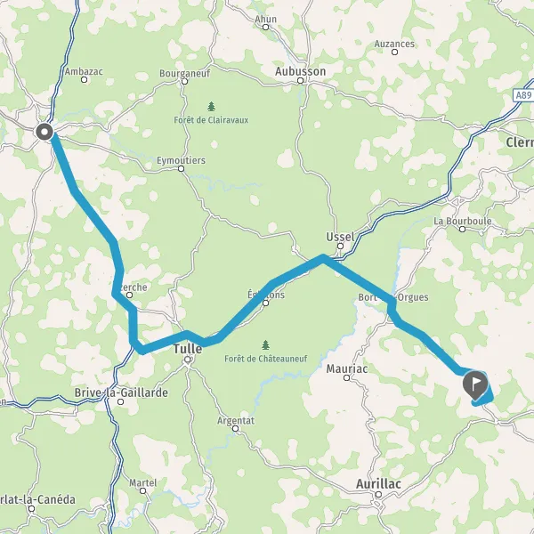 Prendre à droite et rejoindre A89 E70. Continuer sur 68 kilomètres