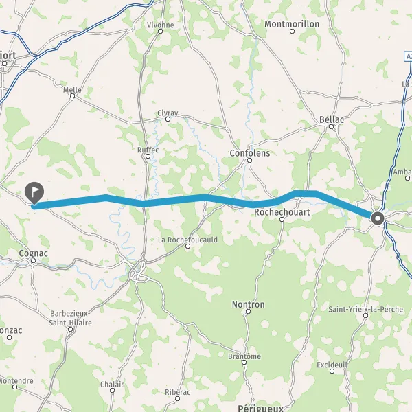 Tourner légèrement à droite sur D739 (Route de Mansle) et continuer sur 18 kilomètres