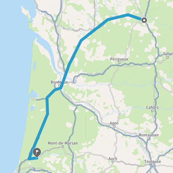 Prendre à droite et rejoindre A63. Continuer sur 117 kilomètres