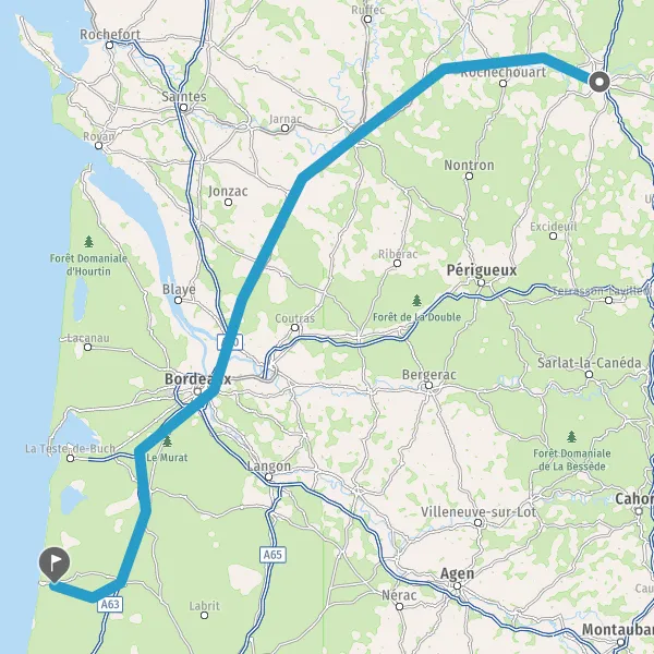 Prendre à droite et rejoindre A63. Continuer sur 12 kilomètres