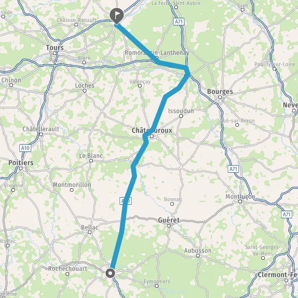 Prendre à gauche et rejoindre A71 E9. Continuer sur 6 kilomètres