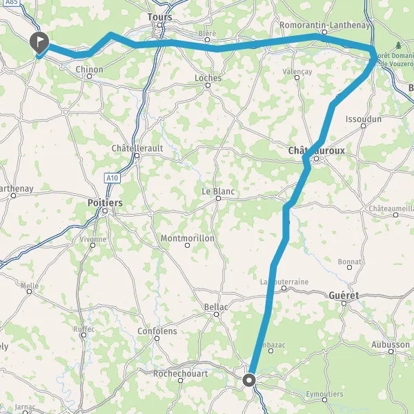 Au rond-point, prendre la 1ère sortie sur N147 (Route de Poitiers) et continuer sur 27 kilomètres