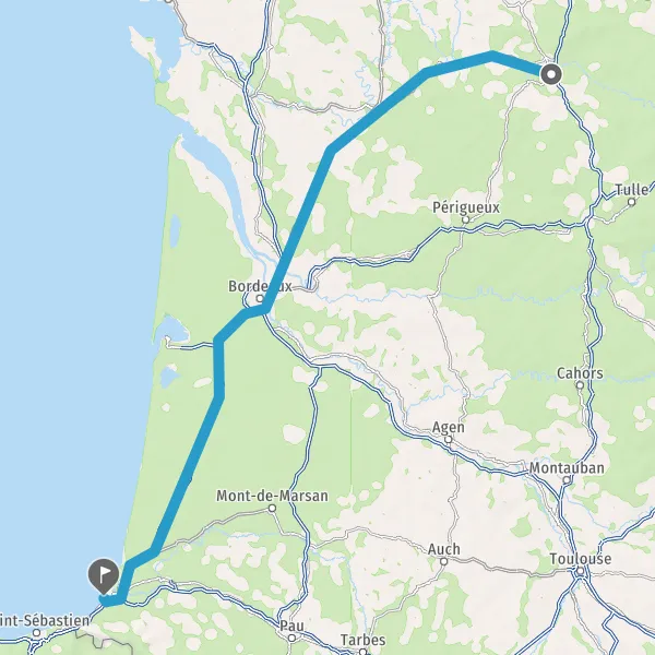 Prendre à droite et rejoindre A63. Continuer sur 183 kilomètres