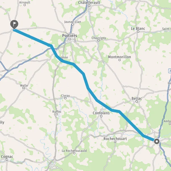 Au rond-point, prendre la 2ème sortie sur N147 (Route de Limoges) et continuer sur 15 kilomètres