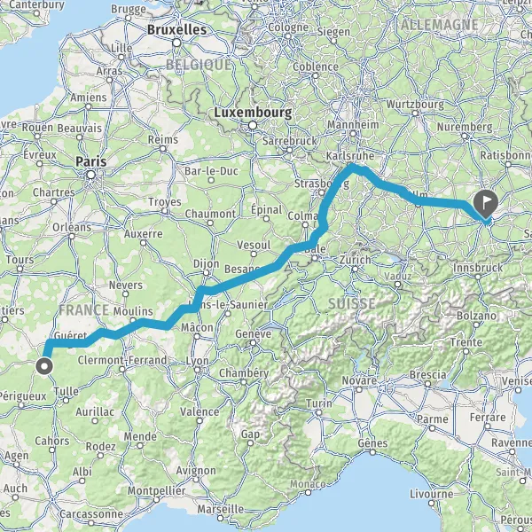 Prendre à droite et rejoindre A36. Continuer sur 165 kilomètres