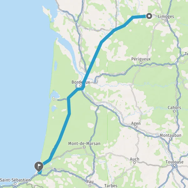 Prendre à droite et rejoindre A63. Continuer sur 172 kilomètres