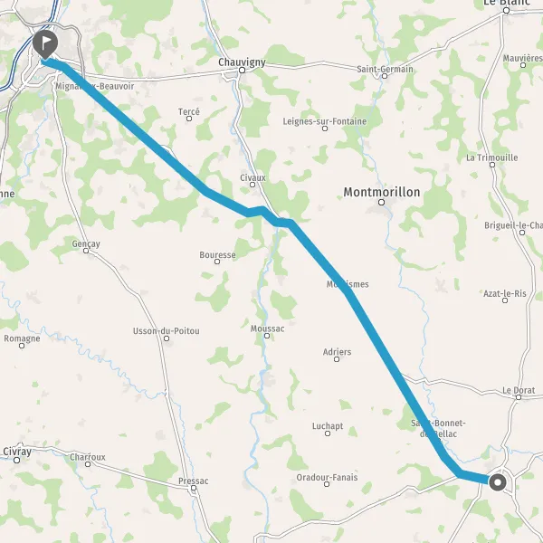 Au rond-point, prendre la 3ème sortie sur Route de Poitiers et continuer sur 1,3 kilomètre