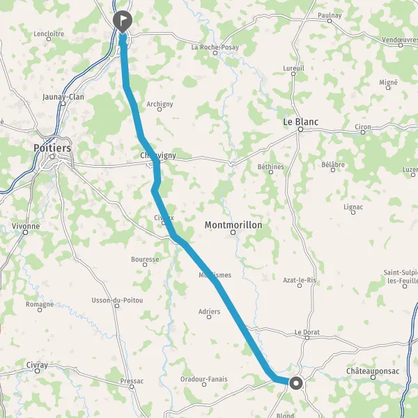 Au rond-point, prendre la 2ème sortie sur D749 (Route de Châtellerault) et continuer sur 19 kilomètres