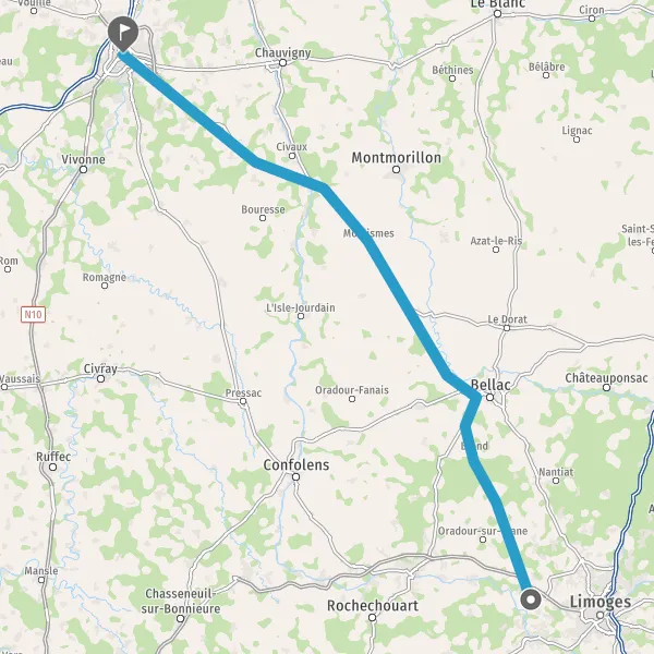 Au rond-point, prendre la 2ème sortie sur N147 (Route de Limoges) et continuer sur 1,1 kilomètre