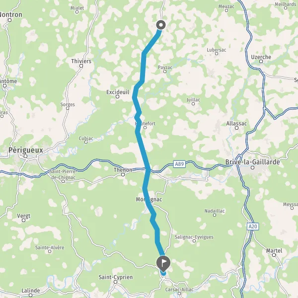 Tourner à droite sur D704 (Avenue de Périgueux) et continuer sur 27 kilomètres