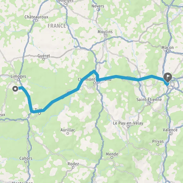 Prendre à droite et rejoindre A89 E70. Continuer sur 160 kilomètres