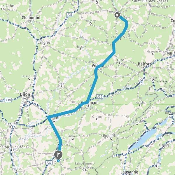 Prendre à gauche et rejoindre A39. Continuer sur 36 kilomètres