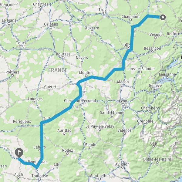 Prendre à droite et rejoindre A89 E70. Continuer sur 160 kilomètres