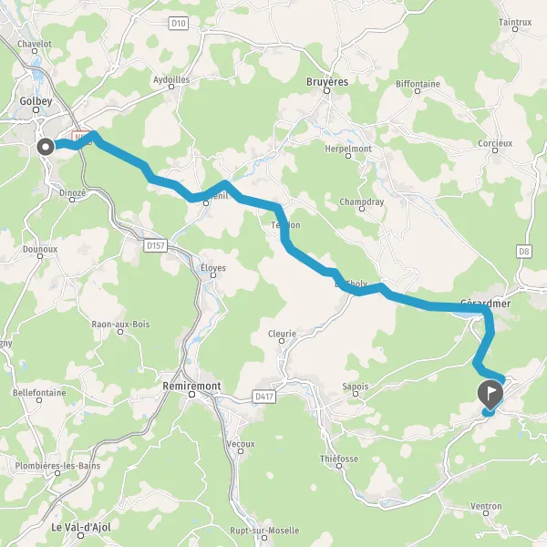 Au rond-point, prendre la 2ème sortie sur D417 (Route d'Épinal) et continuer sur 2,1 kilomètres