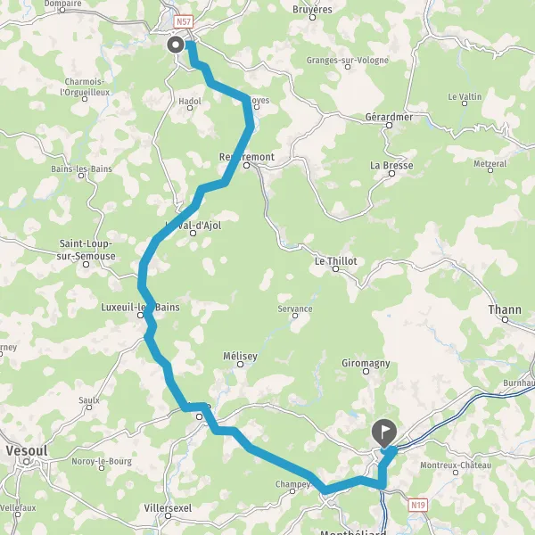 Au rond-point, prendre la 3ème sortie sur D64 (Route de Luxeuil) et continuer sur 230 mètres