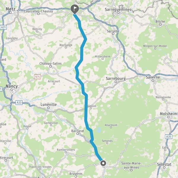 Tourner légèrement à gauche sur Rue de la Petite Domèvre et continuer sur 3 kilomètres