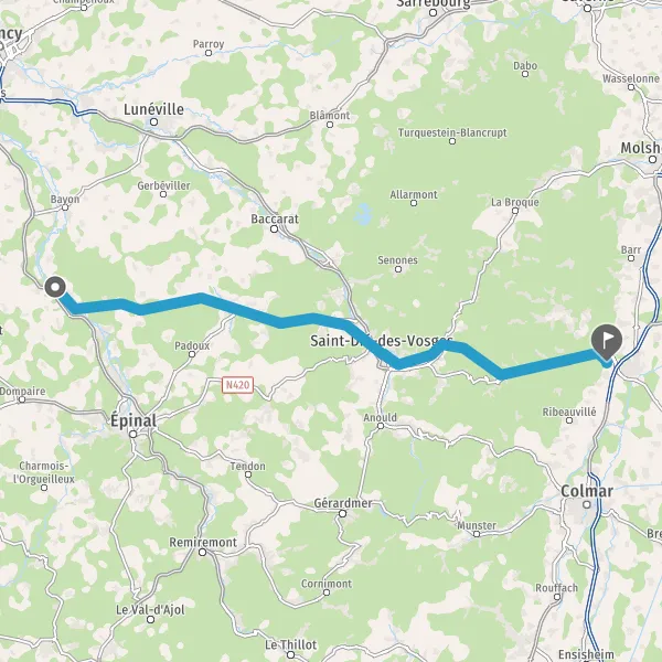 Tourner à gauche sur N420 (Rue d'Épinal) et continuer sur 1,8 kilomètre