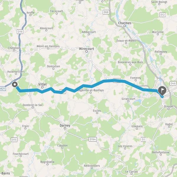 Au rond-point, prendre la 4ème sortie sur D165 D429 (Route de Contrexéville) et continuer sur 1 kilomètre