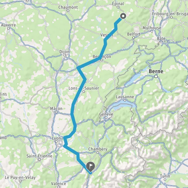 Au rond-point, prendre la 2ème sortie sur N57 E23 (Les Laverottes) et continuer sur 30 kilomètres