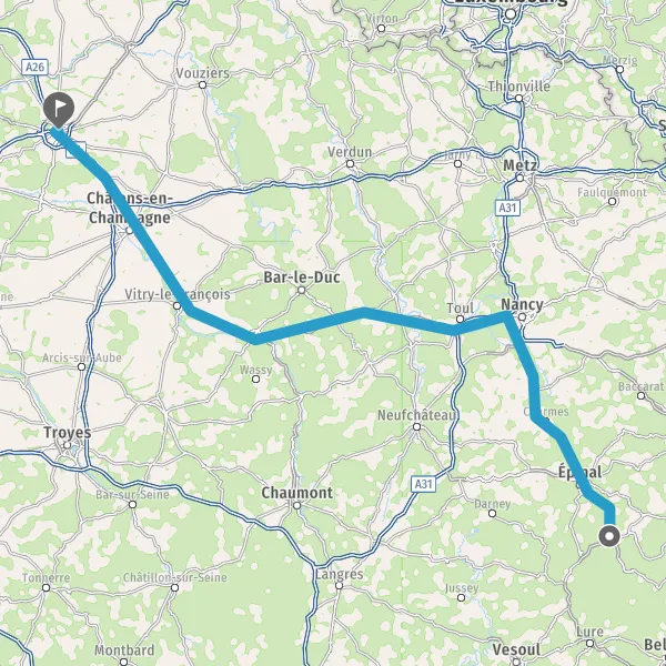 Prendre à droite et rejoindre A4 E50. Continuer sur 26 kilomètres