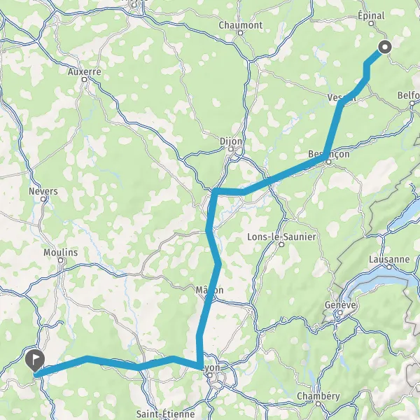 Continuer et rejoindre A89 E70. Continuer sur 77 kilomètres