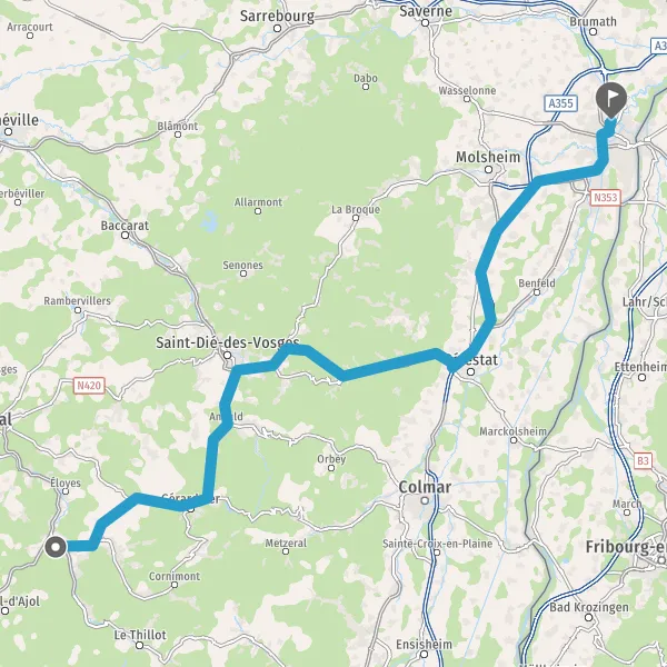 Au rond-point, prendre la 2ème sortie sur D415 (Rue de Saint-Dié) et continuer sur 1 kilomètre