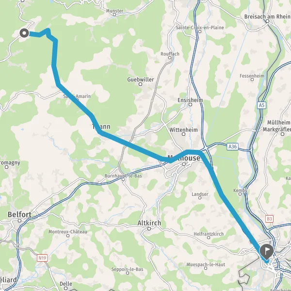 Prendre à gauche et rejoindre A36 E60 E54. Continuer sur 6,2 kilomètres