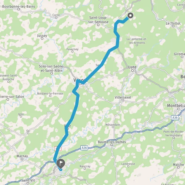 Au rond-point, prendre la 3ème sortie sur N57 (Rue de Vesoul) et continuer sur 2,2 kilomètres