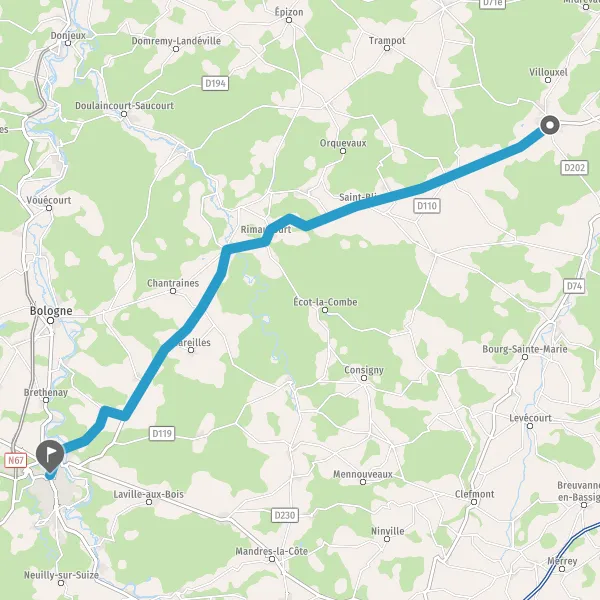 | Distance en voiture | 44,9 km à 45,0 km |