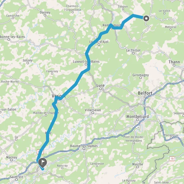 Au rond-point, prendre la 3ème sortie sur N57 (Rue de Vesoul) et continuer sur 2,2 kilomètres