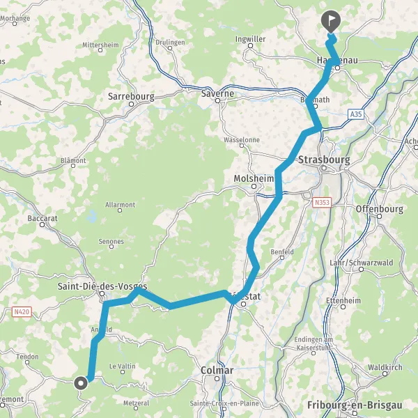 Prendre à droite et rejoindre A35 E25. Continuer sur 33 kilomètres