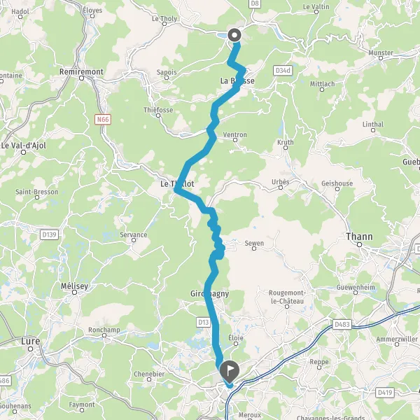 Tourner légèrement à droite sur D486 (Rue Cherménil) et continuer sur 3,4 kilomètres