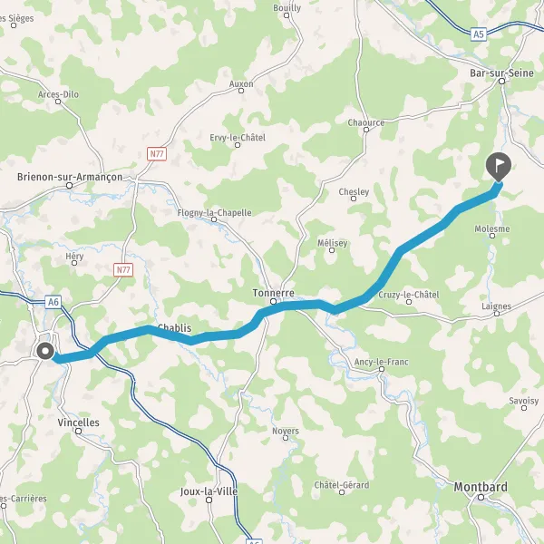 Tourner à droite sur D965 (Route de Tonnerre) et continuer sur 13 kilomètres