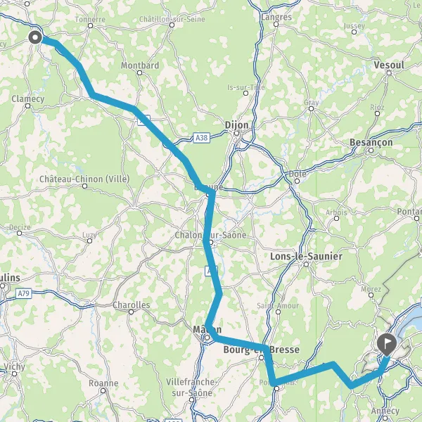 Prendre à droite et rejoindre A6 E60 E15. Continuer sur 136 kilomètres