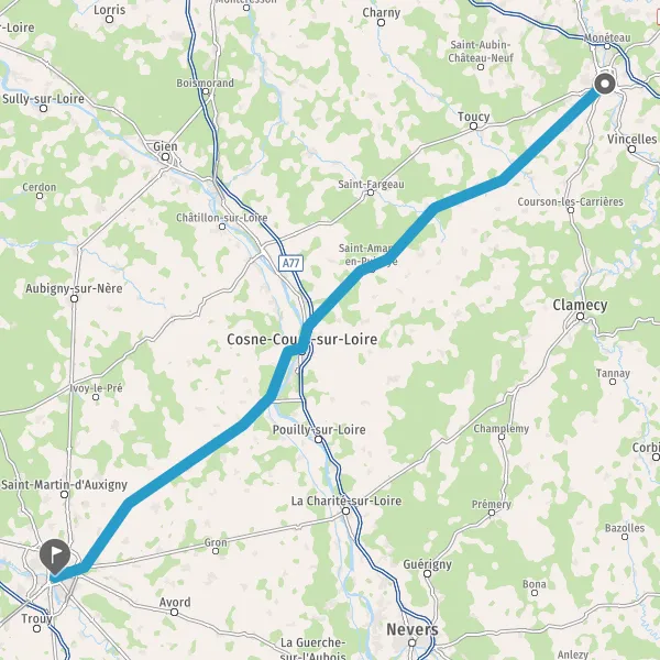 Tourner à droite sur D955 D2 (Route de Cosne) et continuer sur 1,3 kilomètre