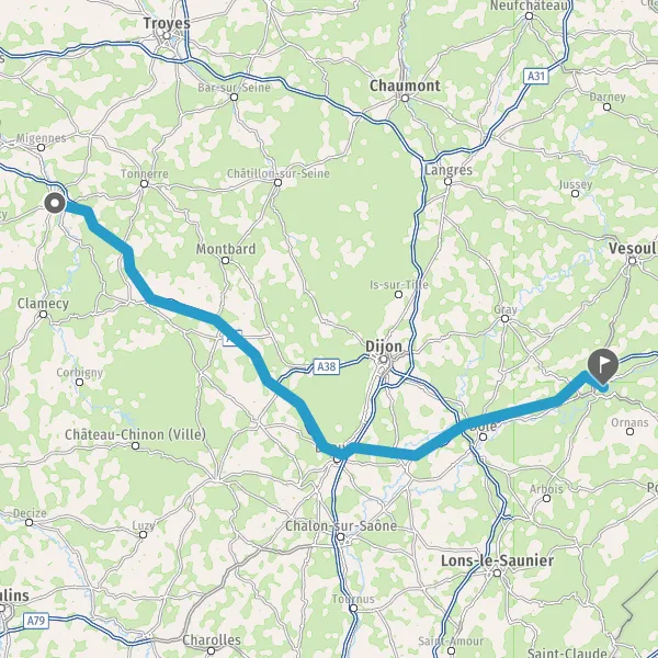 Prendre à droite et rejoindre A6 E60 E15. Continuer sur 136 kilomètres