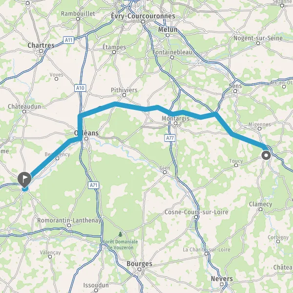 Prendre à gauche et rejoindre A19. Continuer sur 100 kilomètres