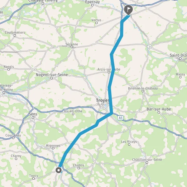 Tourner à droite sur D43 (Route de Vergigny) et continuer sur 2,7 kilomètres