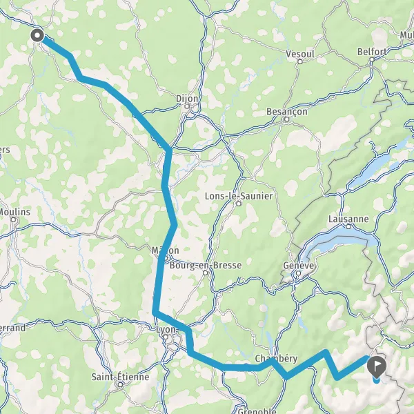 Prendre à droite et rejoindre A43 E70. Continuer sur 19 kilomètres