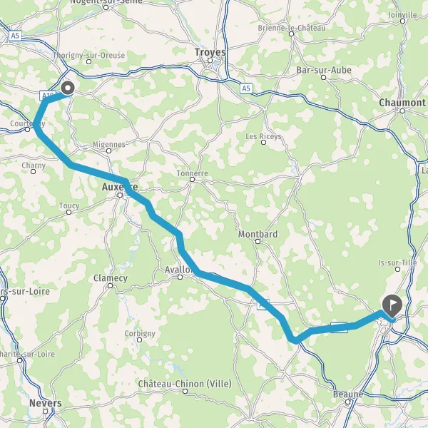 Prendre à droite et rejoindre A6. Continuer sur 152 kilomètres