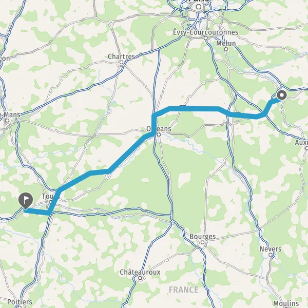 Prendre à droite et rejoindre A19. Continuer sur 100 kilomètres