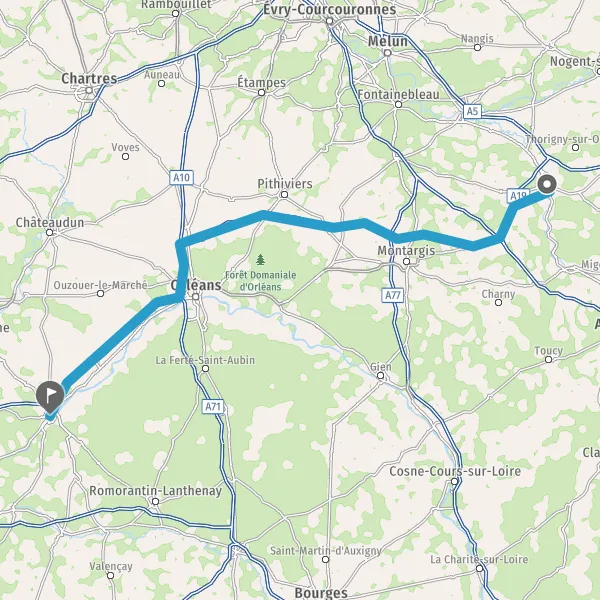 Prendre à droite et rejoindre A19. Continuer sur 100 kilomètres