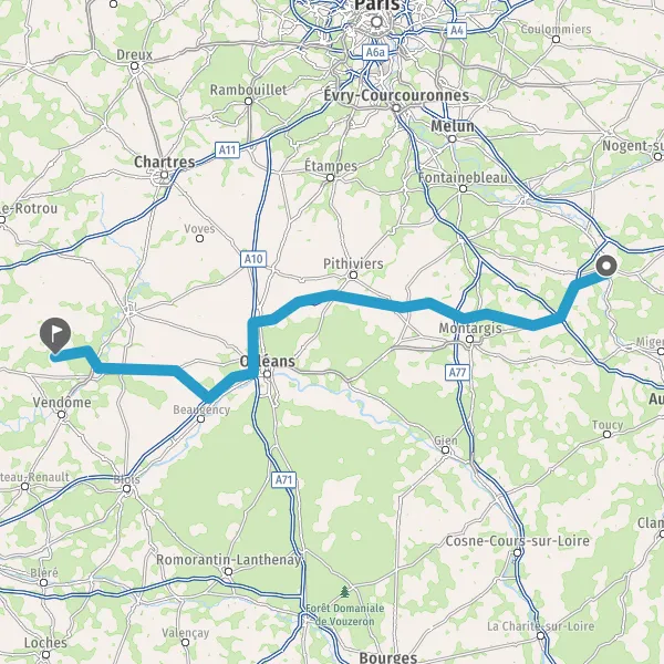Prendre à droite et rejoindre A19. Continuer sur 100 kilomètres